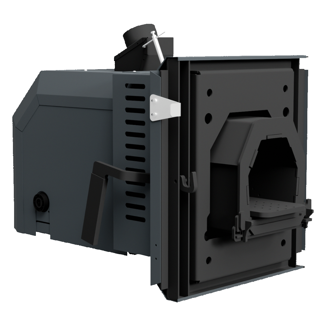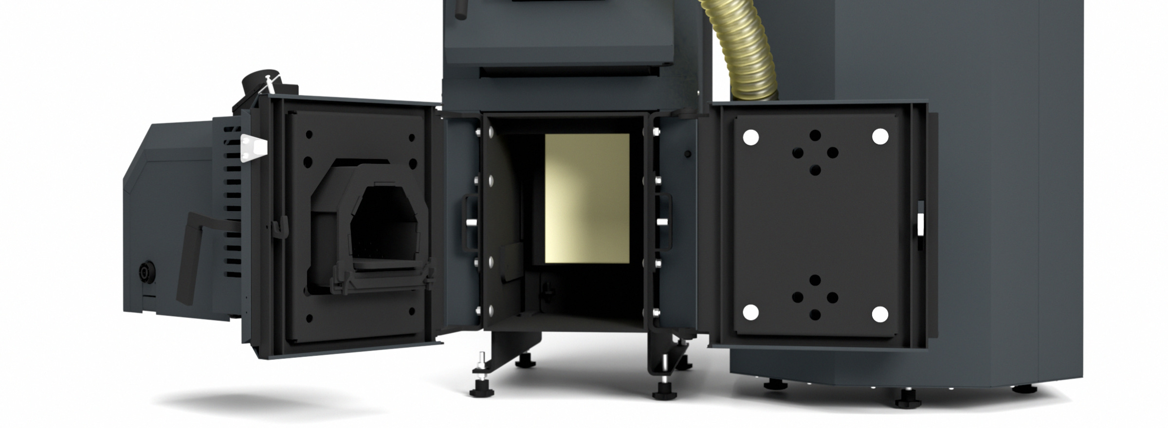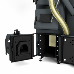 Na kotle sú umiestnené dvierka oproti sebe. Na jednej strane je namontovaný peletový horák, zatiaľ čo druhá strana je vybavená klasickými prikladacími dvierkami na spaľovanie dreva. Jednoduchým uzavretím dvierok, ktoré nie sú v danom režime potrebné, je možné kotol ľahko prispôsobiť zvolenému spôsobu vykurovania bez zložitých zásahov.